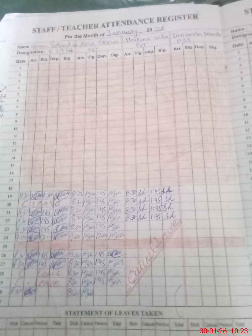 | Remarks (Use Separate Page if Required): PST TANZEELA MANSHA IS ABSENT FROM SCHOOL NO LEAVE RECORD FROM 19 DECEMBER 2025 | |||||
