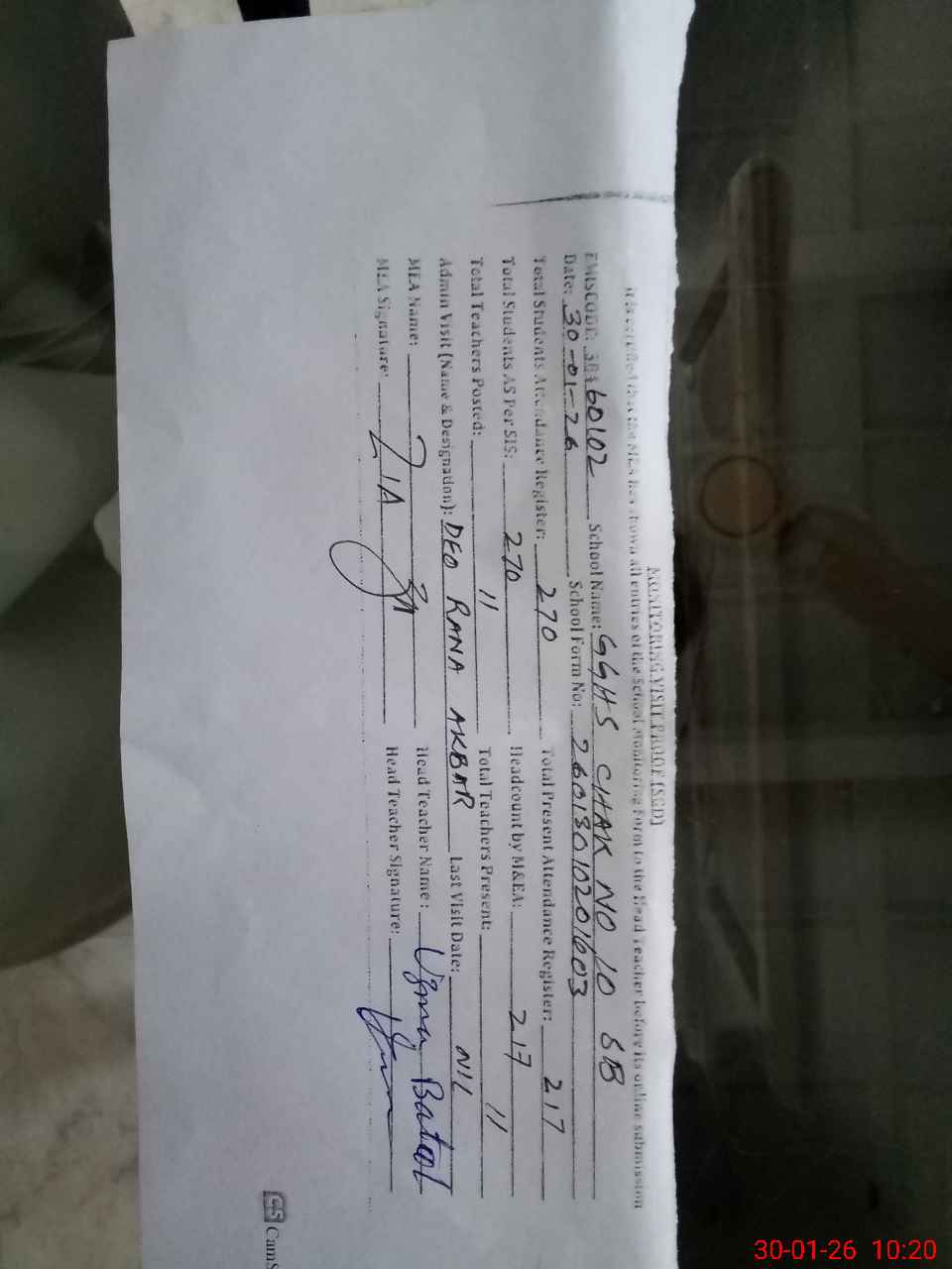 | Monitoring Date: 30-01-2026 | Start Time: 30-01-2026 09:52 AM | End Time: 30-01-2026 10:20 AM | Name of MEA: ZI**** ULHA**** | |