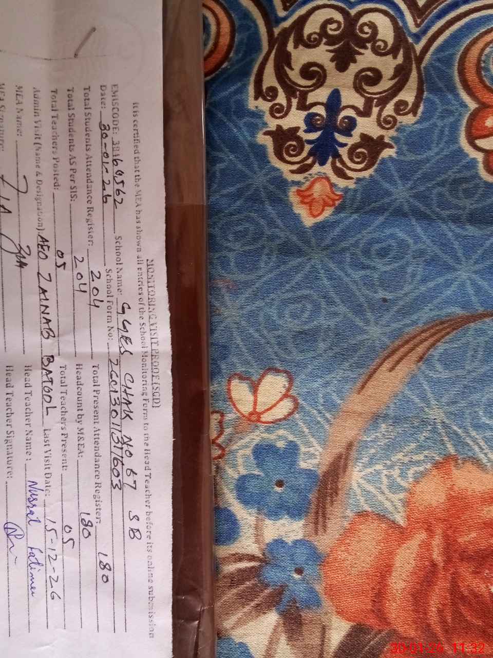 | Certified that this School was Inspected by the Undersigned MEA/DMO Today and the Information Stated Above is as Per Record. | |||||