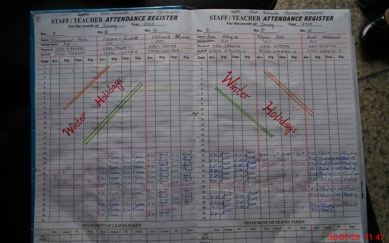 | EMIS Code: 37340054 | Name of School: GPS PIND KAMALA BANIAN | |||