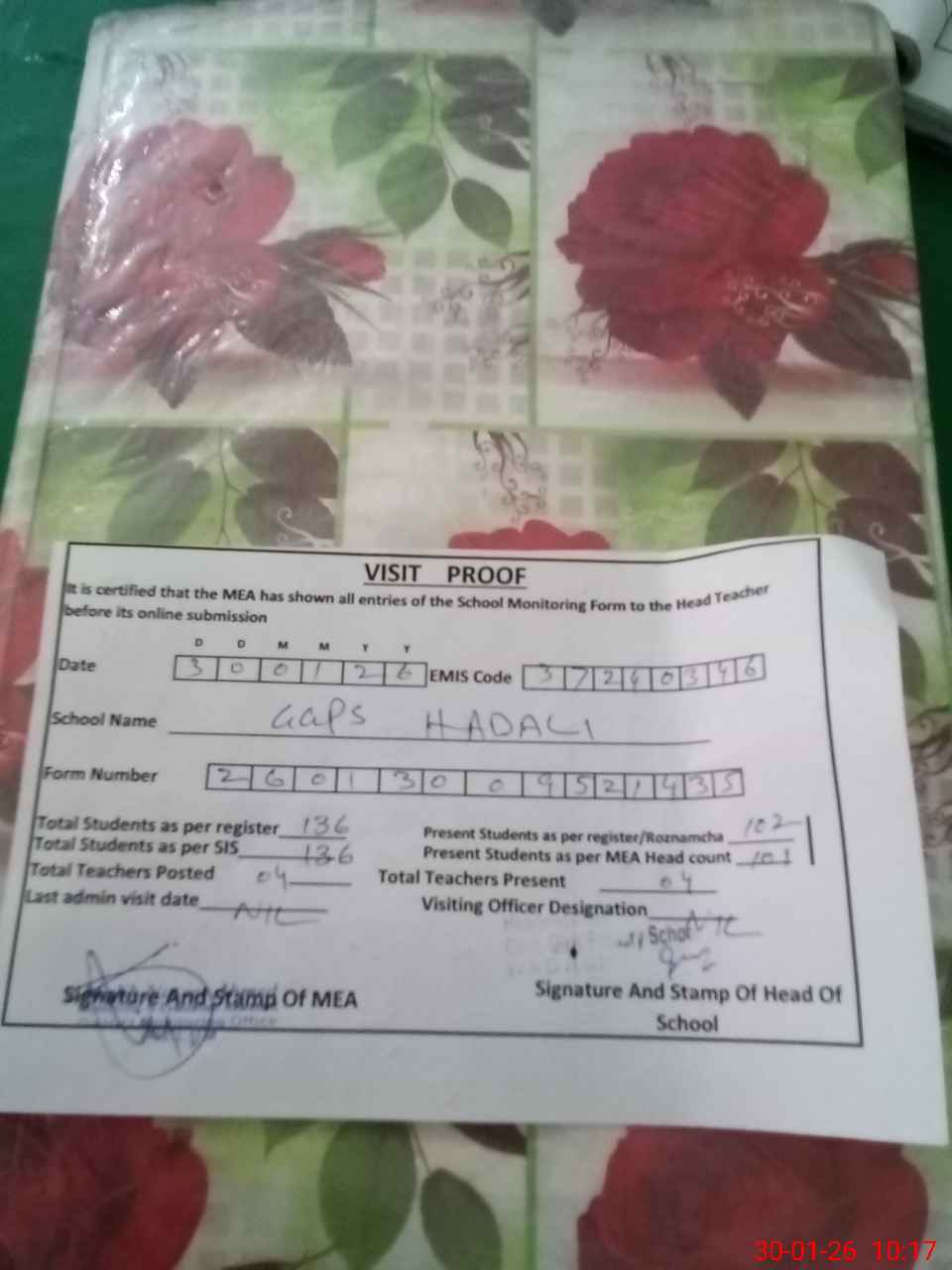 | EMIS Code: 37240346 | Name of School: GGPS HADALI | |||