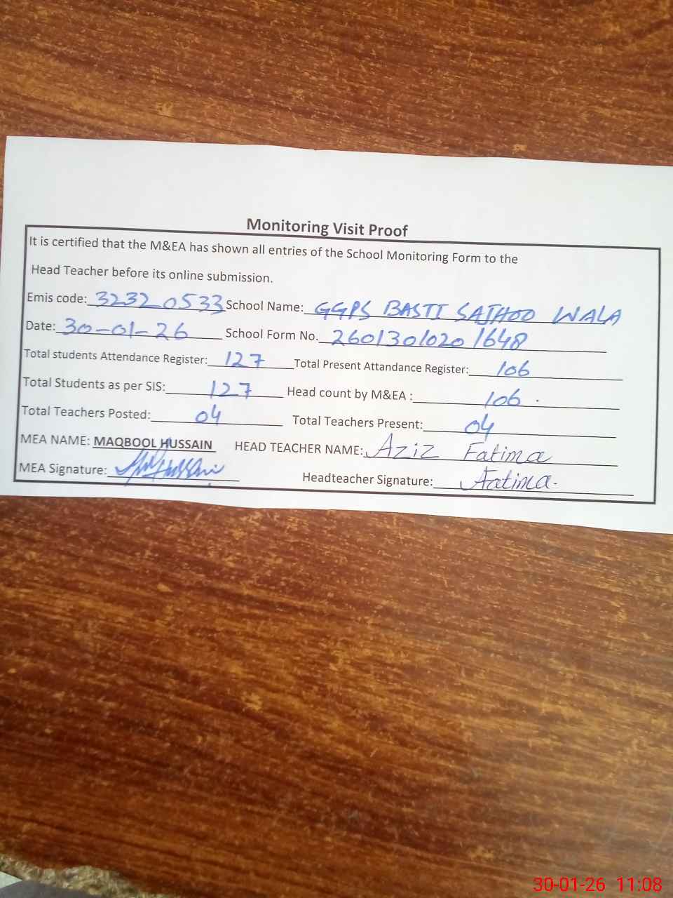 | EMIS Code: 32320533 | Name of School: GGPS BASTI SAJHOO WALA | |||