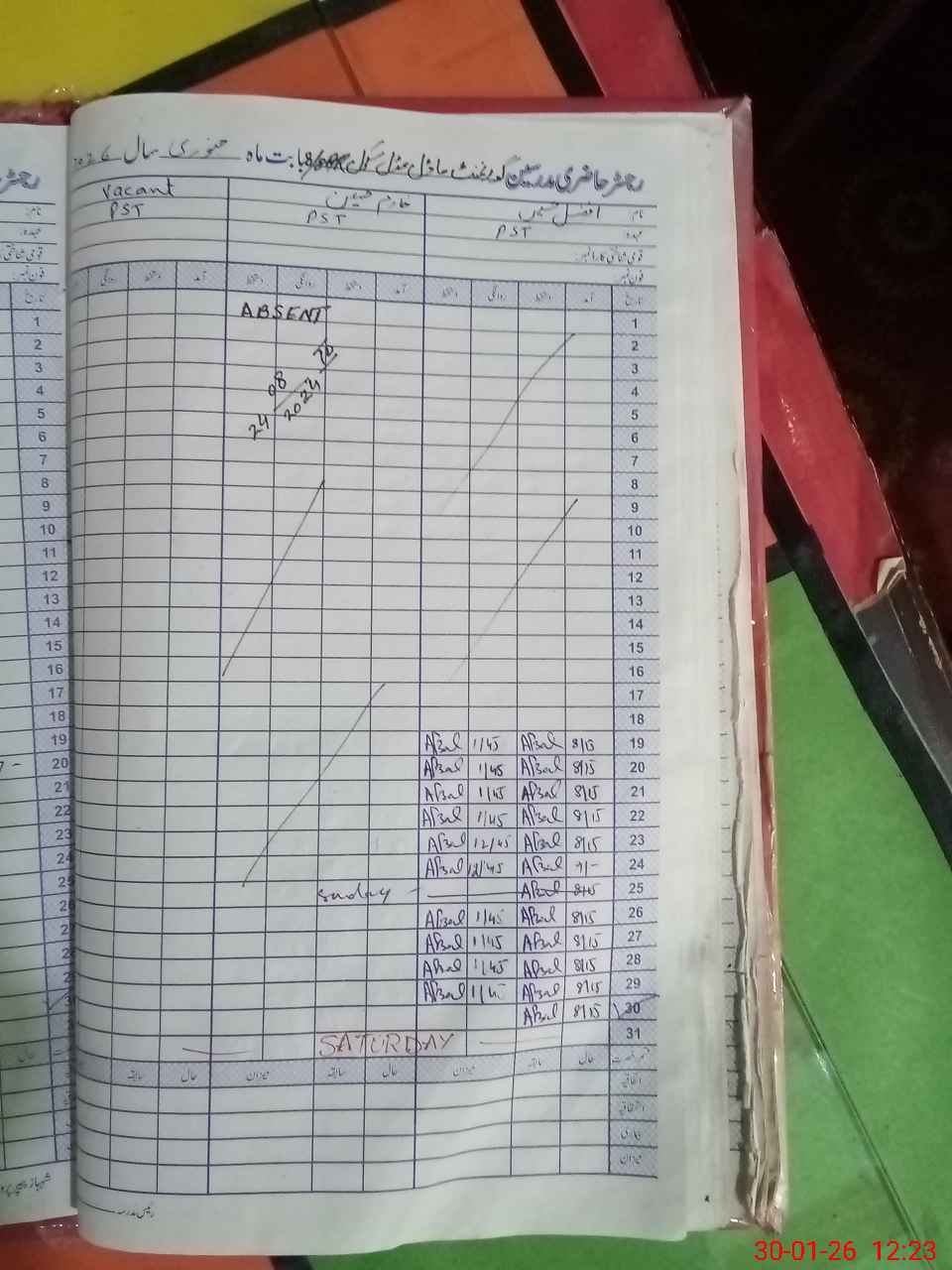 | 36**** | Kh**** Hu**** | PST Arts | Regular | 0 | 0 | 31 | 0 | 0 | 0 | 0 | 0 | 0 | Absent (Un-Authorized) |