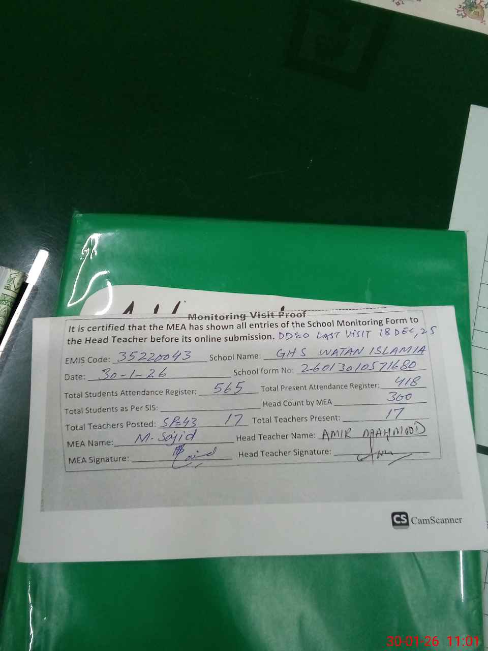 | EMIS Code: 35220043 | Name of School: GHS WATAN ISLAMIA BRANDRATH ROAD | |||