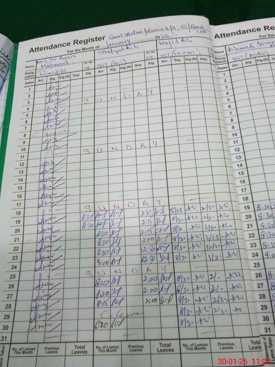 | Remarks (Use Separate Page if Required): Present students percentage is 53 percent 118 students difference found in Roznamcha and head count 35220043 | |||||