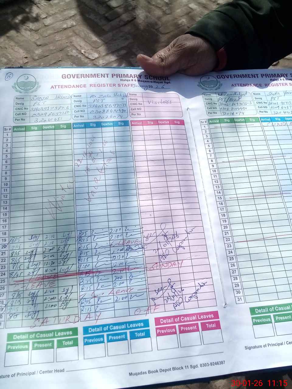 | Name: Sa**** Ya**** Designation: (School Headmaster's/Headmistress's) PST Phone/Cell Number: 03**** |
