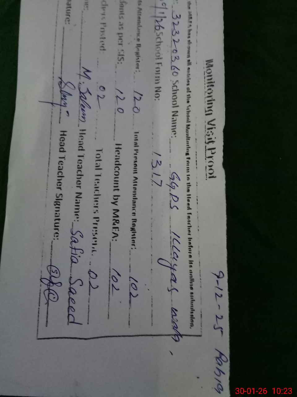 | EMIS Code: 32320360 | Name of School: GGPS ILLYAS WALA | |||