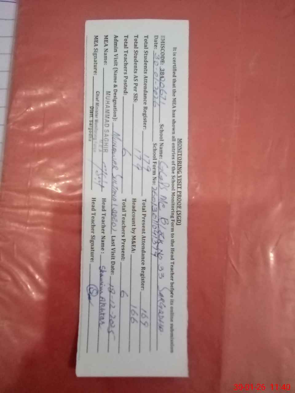 | EMIS Code: 38420671 | Name of School: GGPS MC BLOCK NO.33 SARGODHA | |||