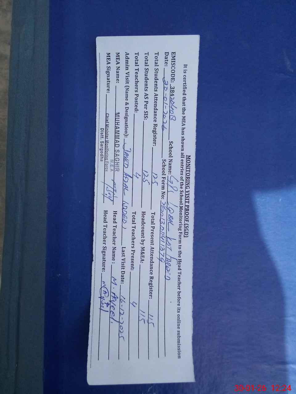 | EMIS Code: 38420408 | Name of School: GPS IQBAL KOT FARID | |||