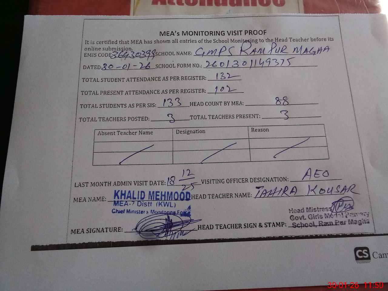 | EMIS Code: 36430399 | Name of School: GMPS RAM PUR MAGHA, TULAMBA | |||
