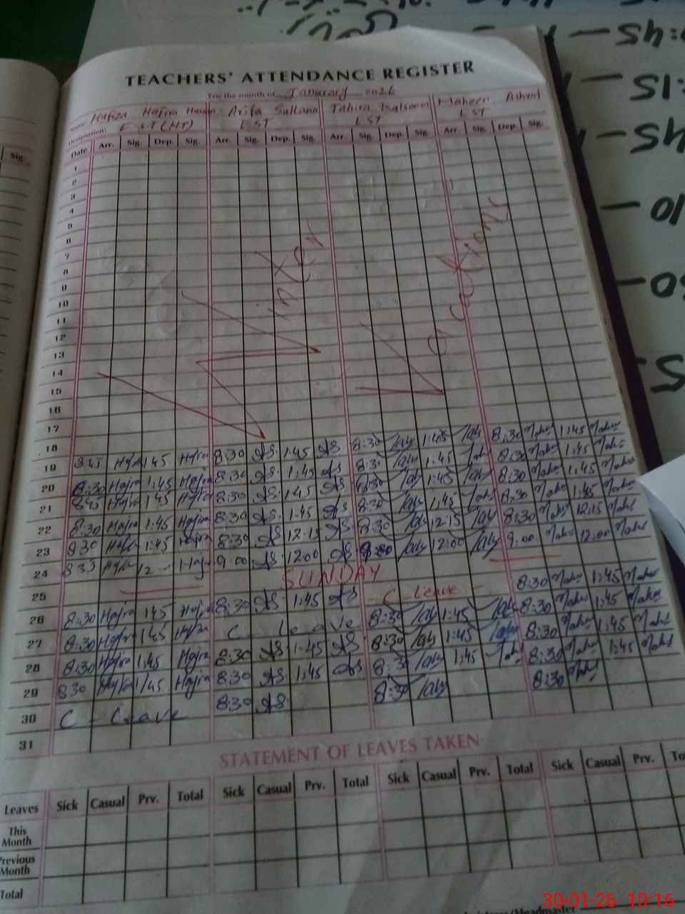 | Leave | Duty | Absent | Maternity | Medical | Ex- Pak |