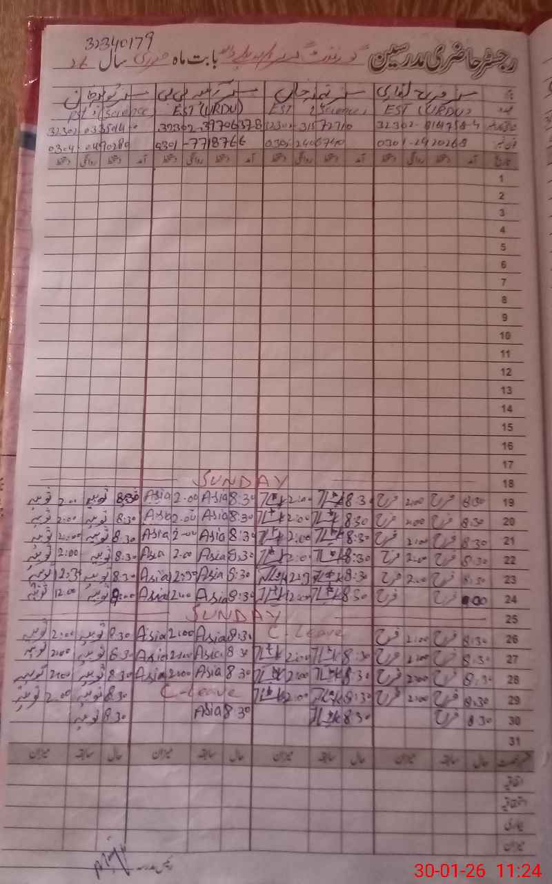 | Name: No**** Az**** Designation: (School Headmaster's/Headmistress's) Headmistress Phone/Cell Number: 03**** |