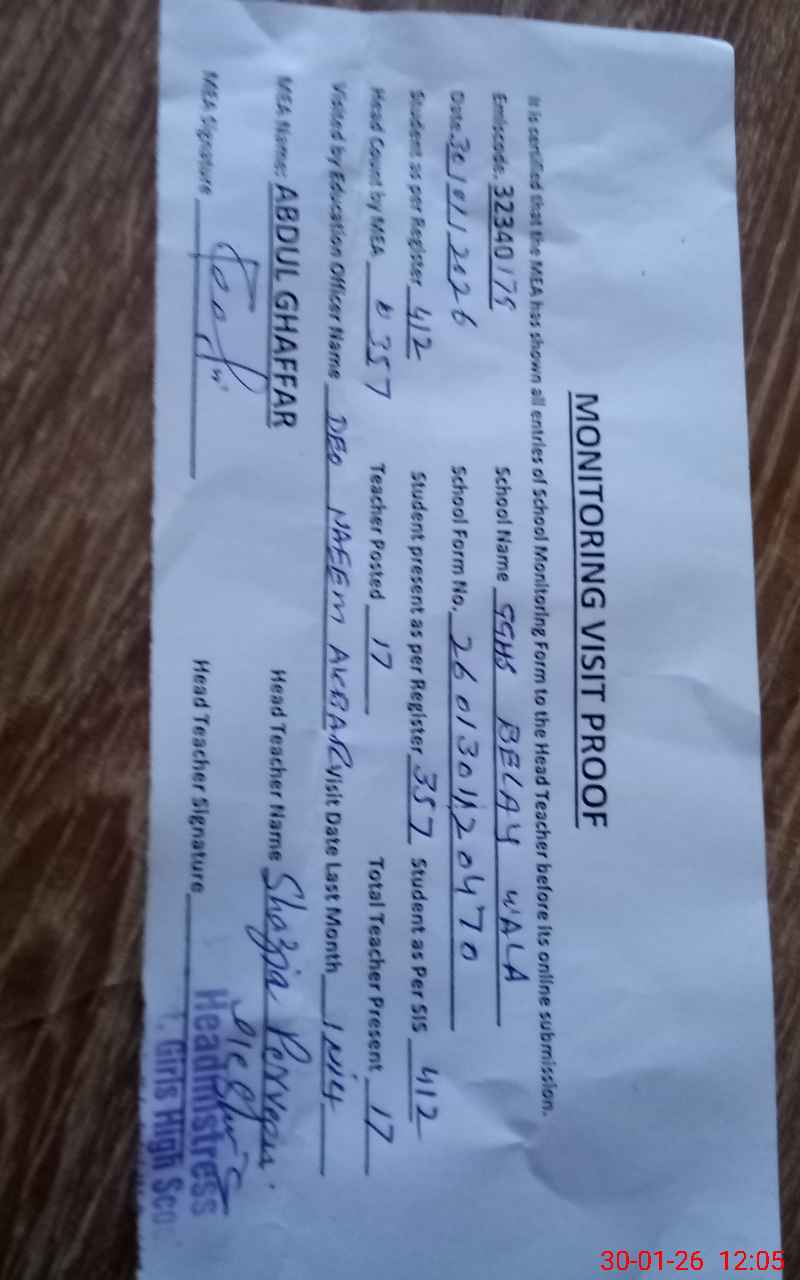 | EMIS Code: 32340179 | Name of School: GGHS BELAY WALA | |||