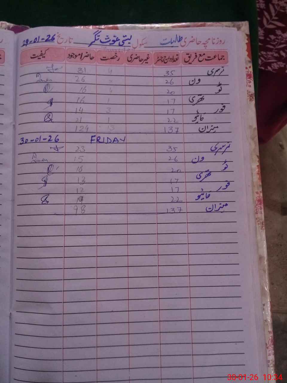 | No. of Students Present - Female | 0 | 0 | 15 | 16 | 13 | 12 | 19 | 98 | ||||||||