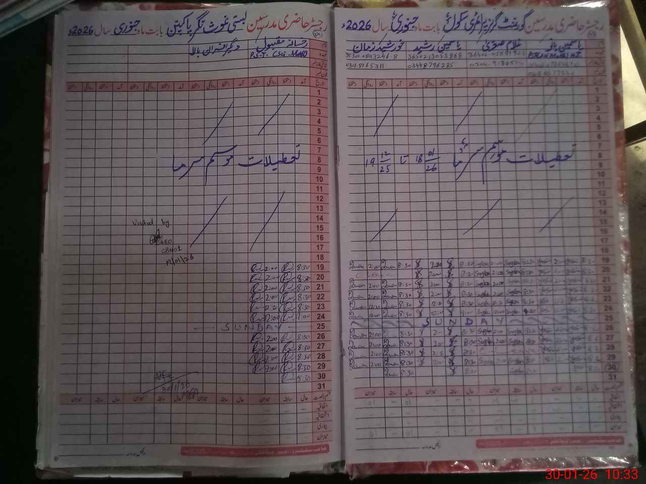 | School Visited by School Health & Nutrition Supervisor (No. of Visits) | 1 | Name1: | Zaib Ihsan | Name2: | Nil |