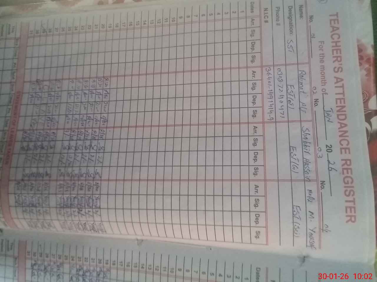 | Name: RA**** AL**** Designation: (School Headmaster's/Headmistress's) EST (HM) Phone/Cell Number: 03**** |