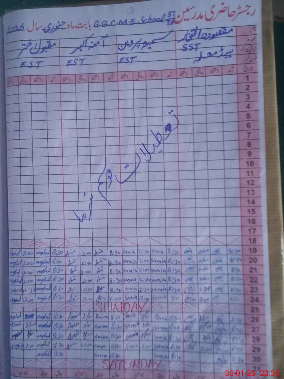 | Name: Ma**** If**** Designation: (School Headmaster's/Headmistress's) SST (GENERAL) Phone/Cell Number: 03**** |