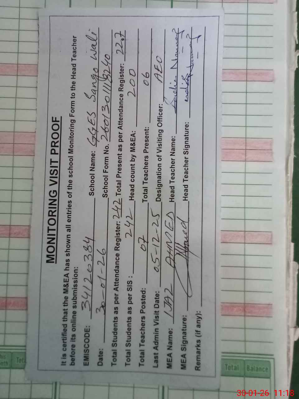 | EMIS Code: 34120384 | Name of School: GGES SANGO WALI | |||