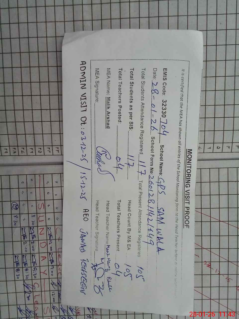 | EMIS Code: 32330704 | Name of School: GPS SAM WALA | |||