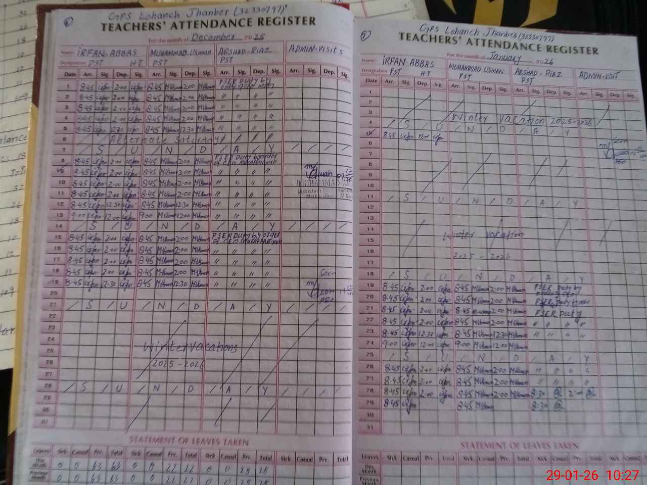 | Name: Ir**** Ab**** Designation: (School Headmaster's/Headmistress's) PST Phone/Cell Number: 03**** |