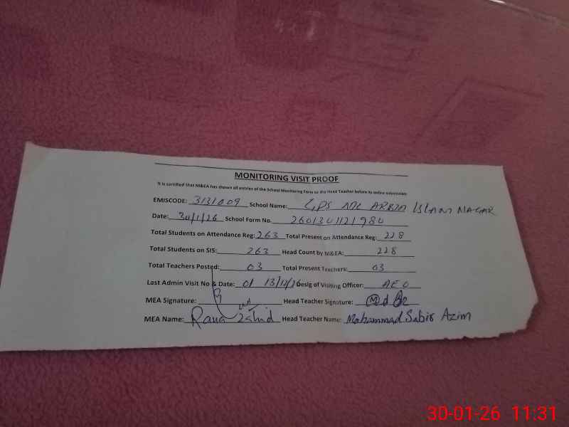 | EMIS Code: 31310099 | Name of School: GPS MC ARBIA MODDIB MOHALLA ISLAM NAGAR | |||