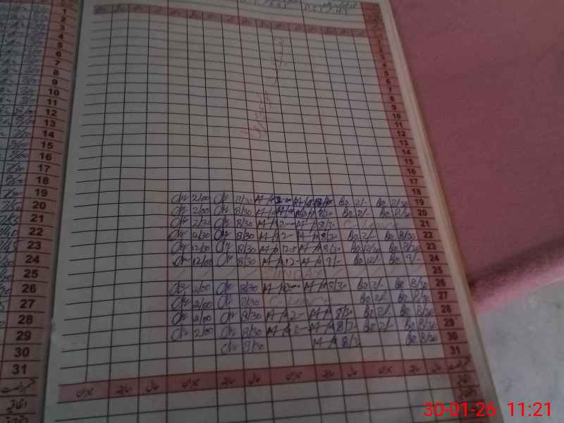 | 00**** | Sh**** Ah**** | C DAR | 2 | 0 | 0 | 0 | 0 | 0 | 0 | 0 | 2 | Absent (Un-Authorized) | |