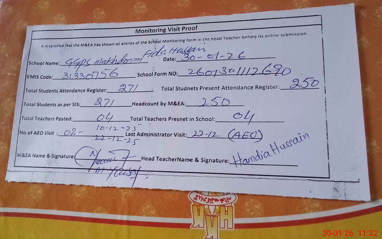 | EMIS Code: 31330756 | Name of School: GGPS MAKHDOOM FIDA HUSSAIN | |||