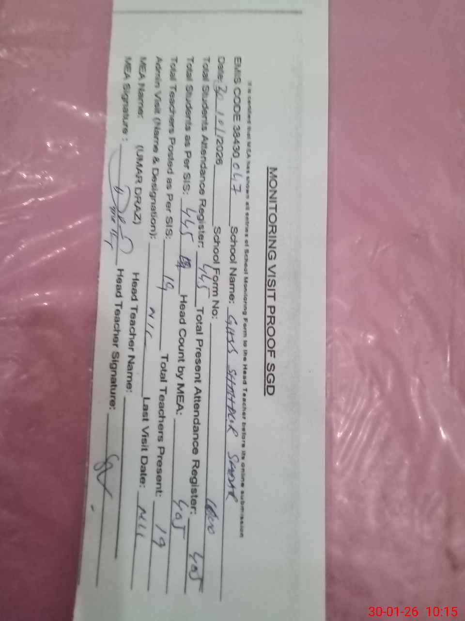 | EMIS Code: 38430047 | Name of School: GHSS SHAHPUR SADAR | |||