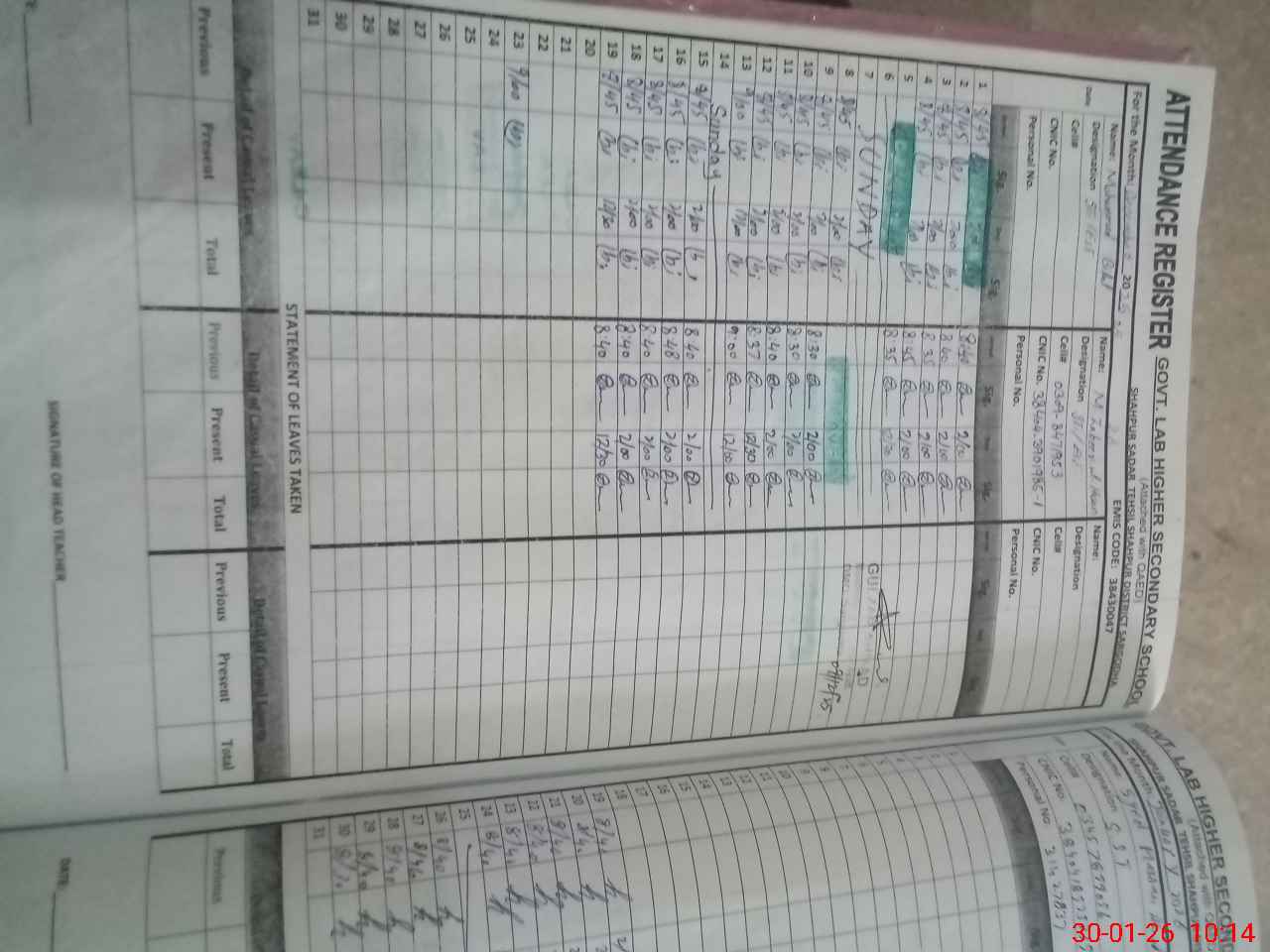 | Name: HA**** AH**** SH**** Designation: (School Headmaster's/Headmistress's) SST Phone/Cell Number: 03**** |