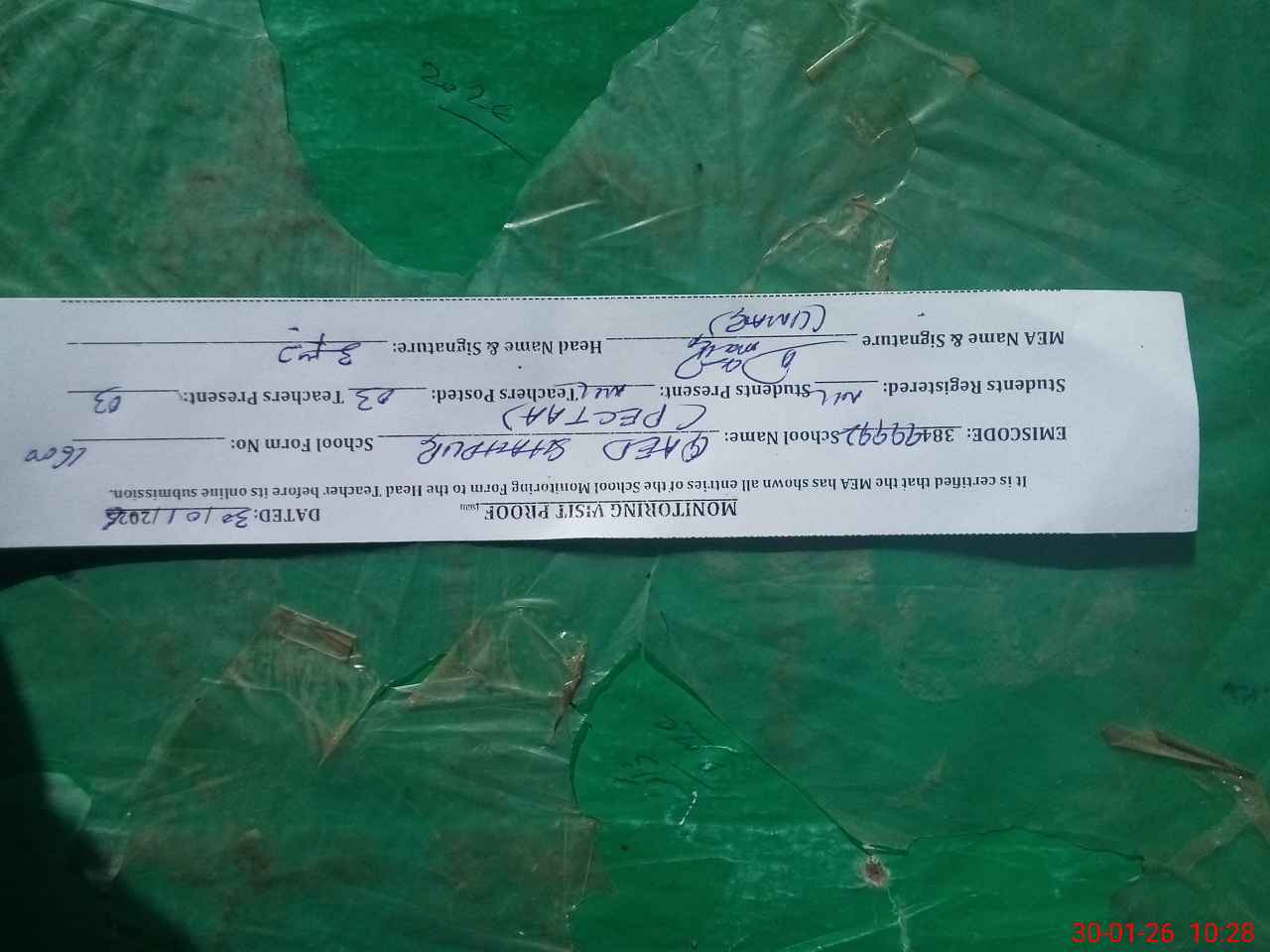 | Attendance Register | Head Teacher | MEA with School | Visit Proof |