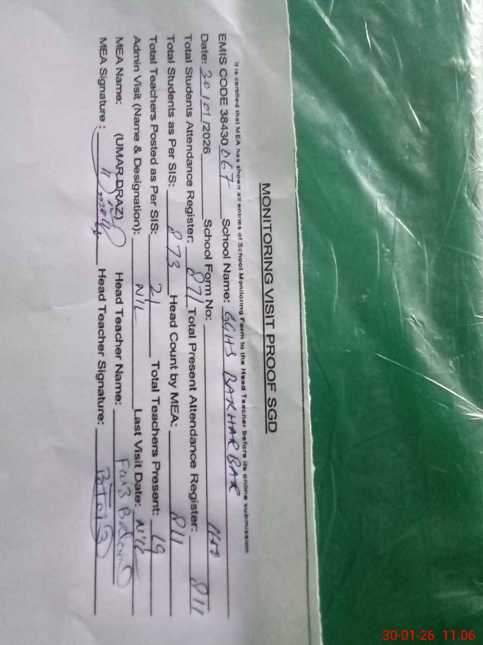 | EMIS Code: 38430067 | Name of School: GGHS BAKHARBAR | |||