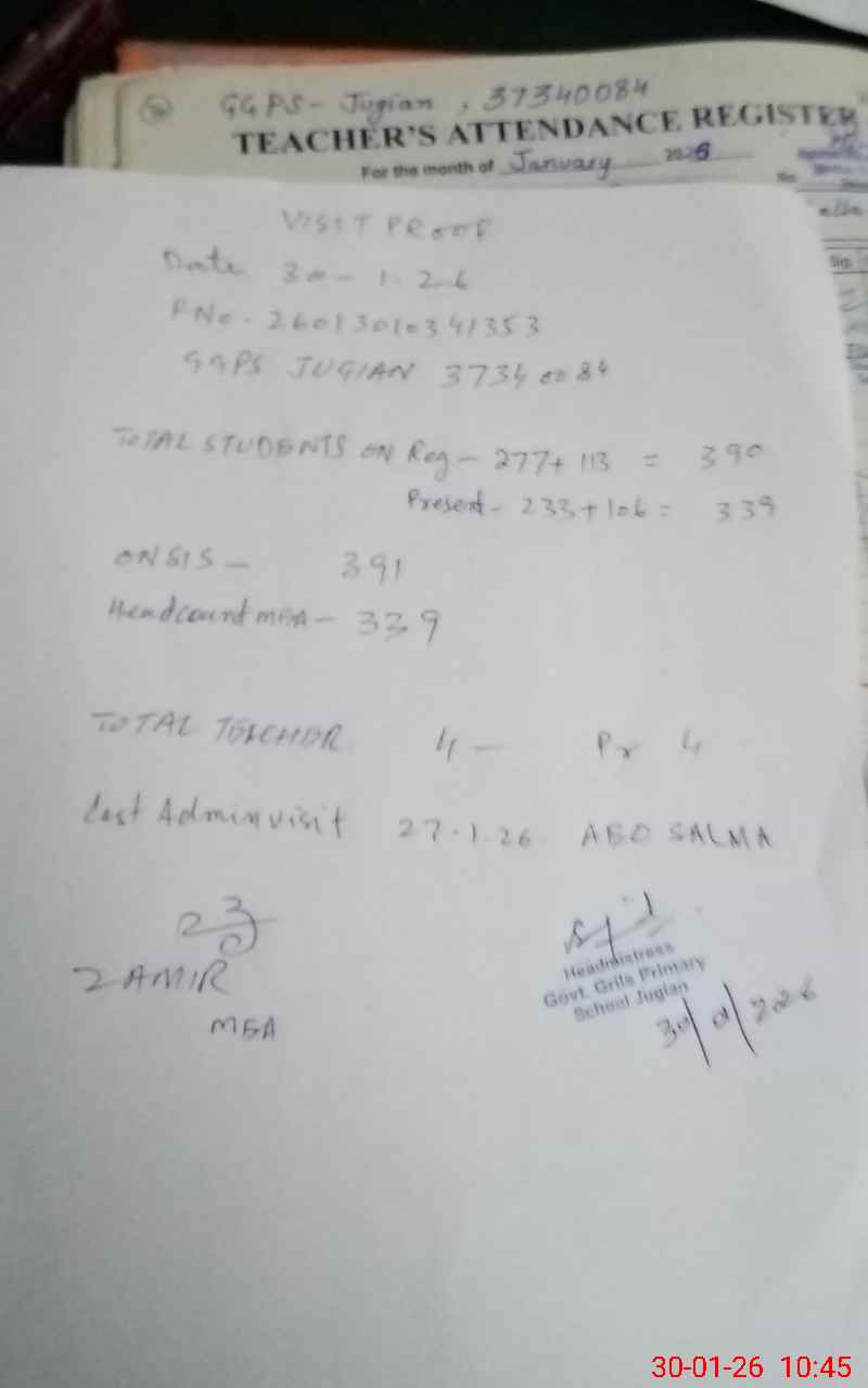 | Monitoring Date: 30-01-2026 | Start Time: 30-01-2026 10:21 AM | End Time: 30-01-2026 10:45 AM | Name of MEA: Za**** Ah**** | |