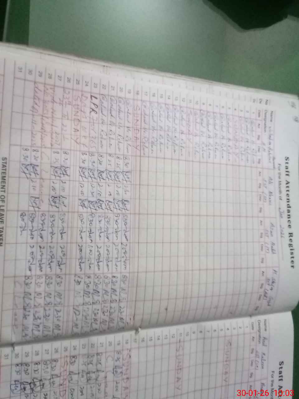 | CNIC | Full Name | Designation | R/C | Absence During Last Calender Month |