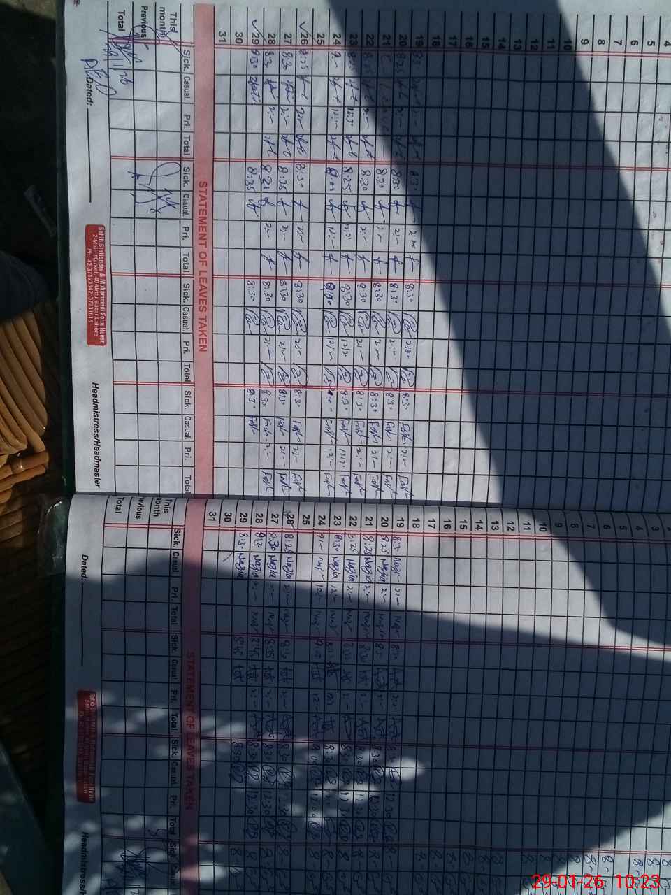 | CNIC | Full Name | Designation | R/C | Absence During Last Calender Month |