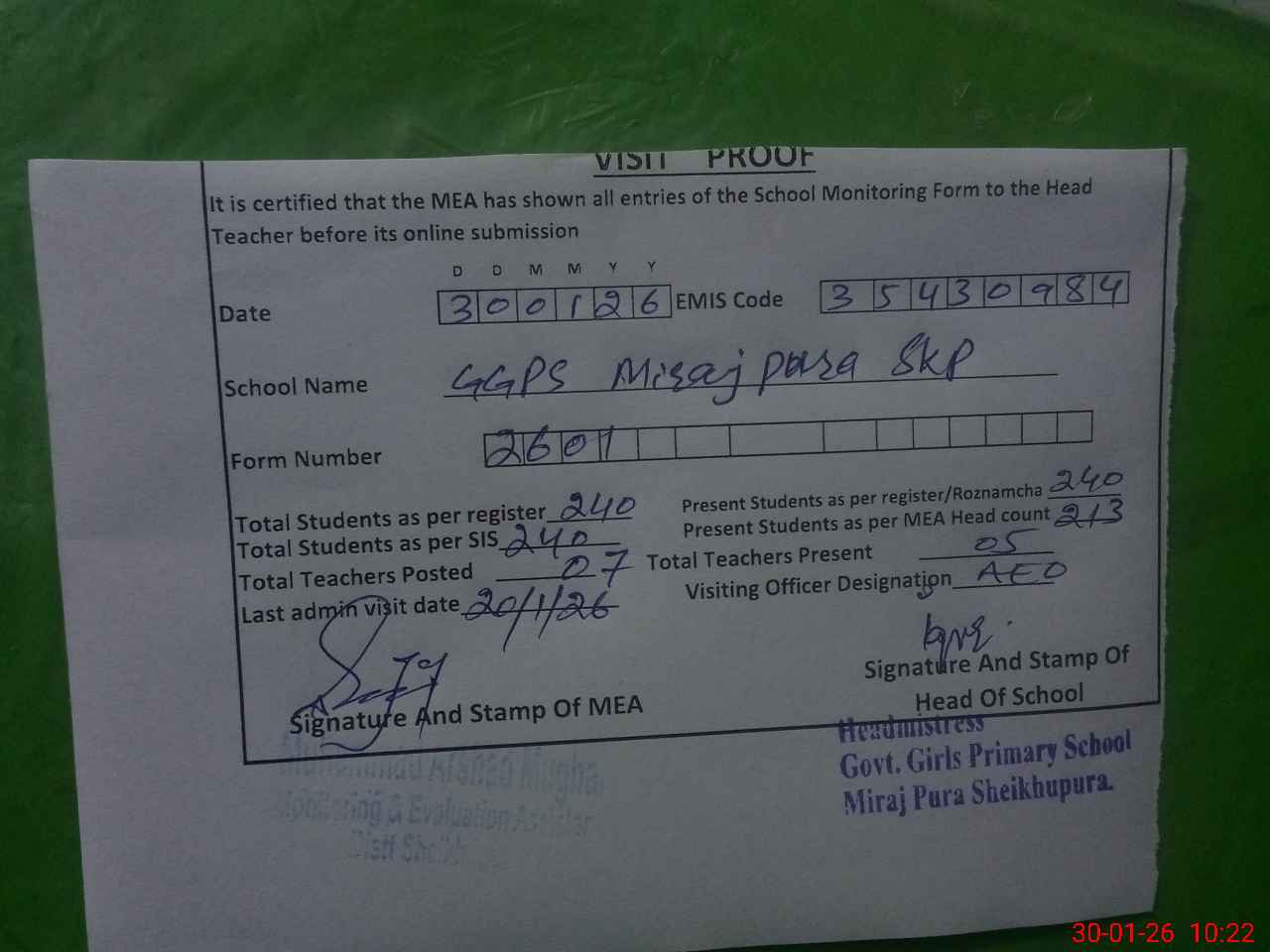 | EMIS Code: 35430984 | Name of School: GGPS MEHRAJ PURA | |||
