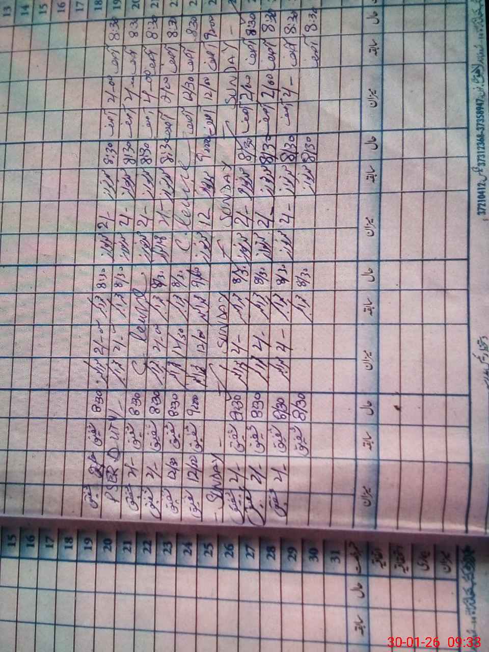 | CNIC | Full Name | Designation | R/C | Absence During Last Calender Month |