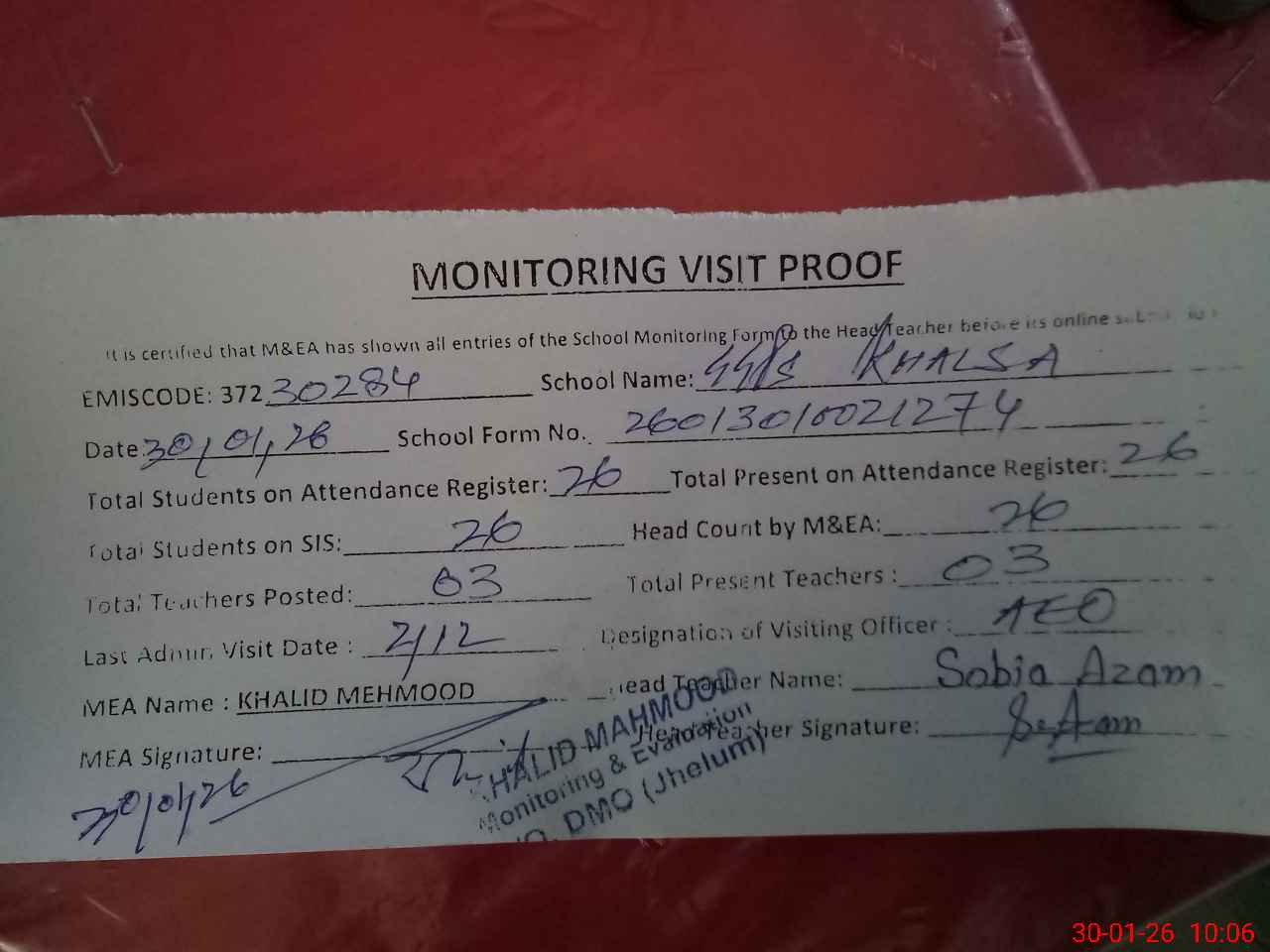 | Monitoring Date: 30-01-2026 | Start Time: 30-01-2026 09:56 AM | End Time: 30-01-2026 10:19 AM | Name of MEA: KH**** ME**** | |