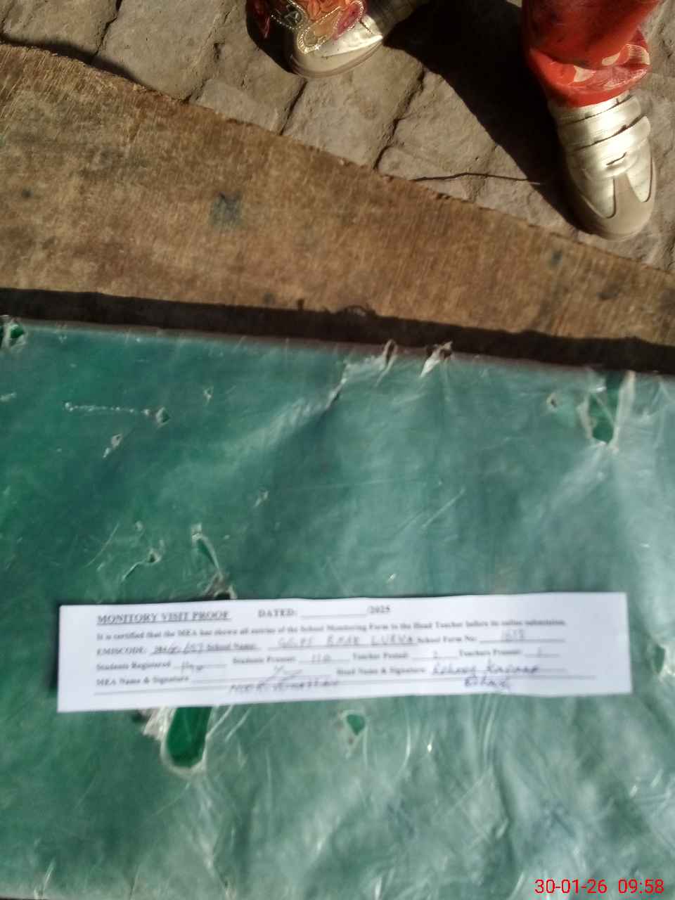 | Attendance Register | Head Teacher | MEA with School | Visit Proof |