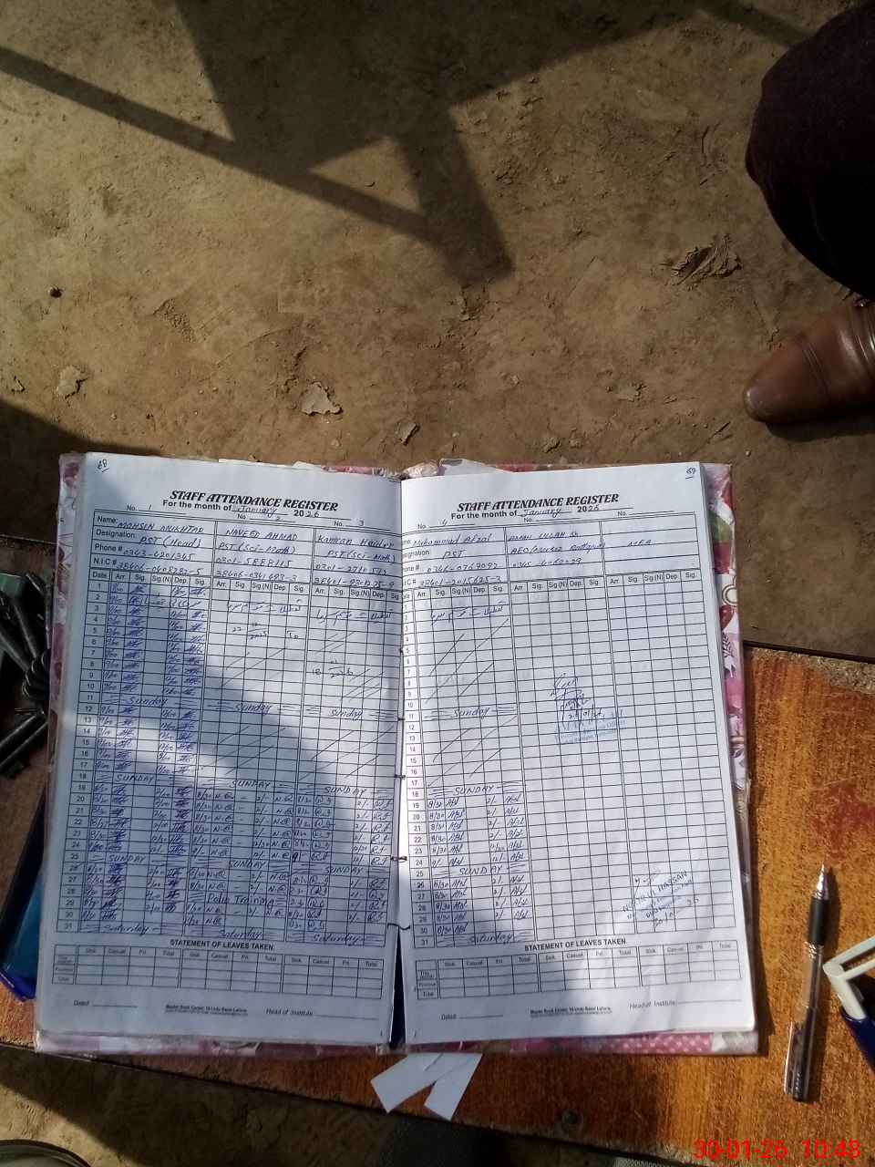 | CNIC | Full Name | Designation | R/C | Absence during last cal. month |