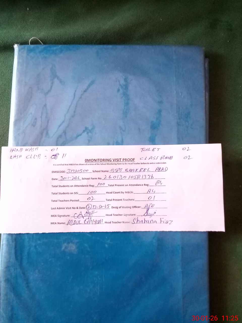 | Attendance Register | Head Teacher | MEA with School | Visit Proof |