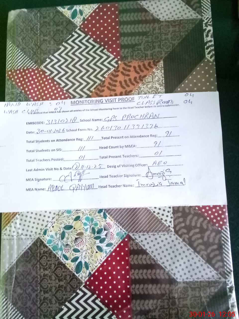 | EMIS Code: 31310218 | Name of School: GPS PROCHRAN (After Noon) | |||