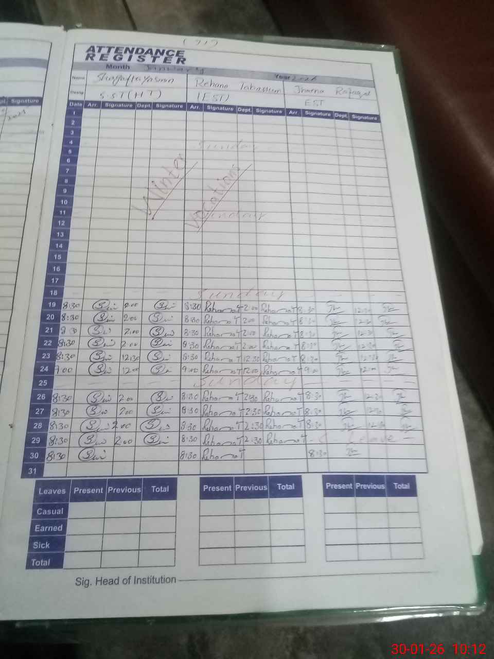 | Name: Su**** Ya**** Designation: (School Headmaster's/Headmistress's) S.S.T.(Science) Phone/Cell Number: 03**** |