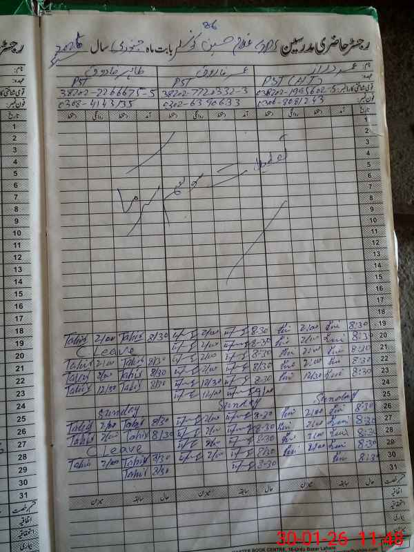 | CNIC | Full Name | Designation | R/C | Absence During Last Calender Month |