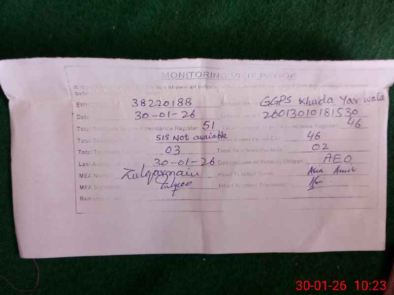 | EMIS Code: 38220188 | Name of School: GGPS KHUDA YAR WALA | |||