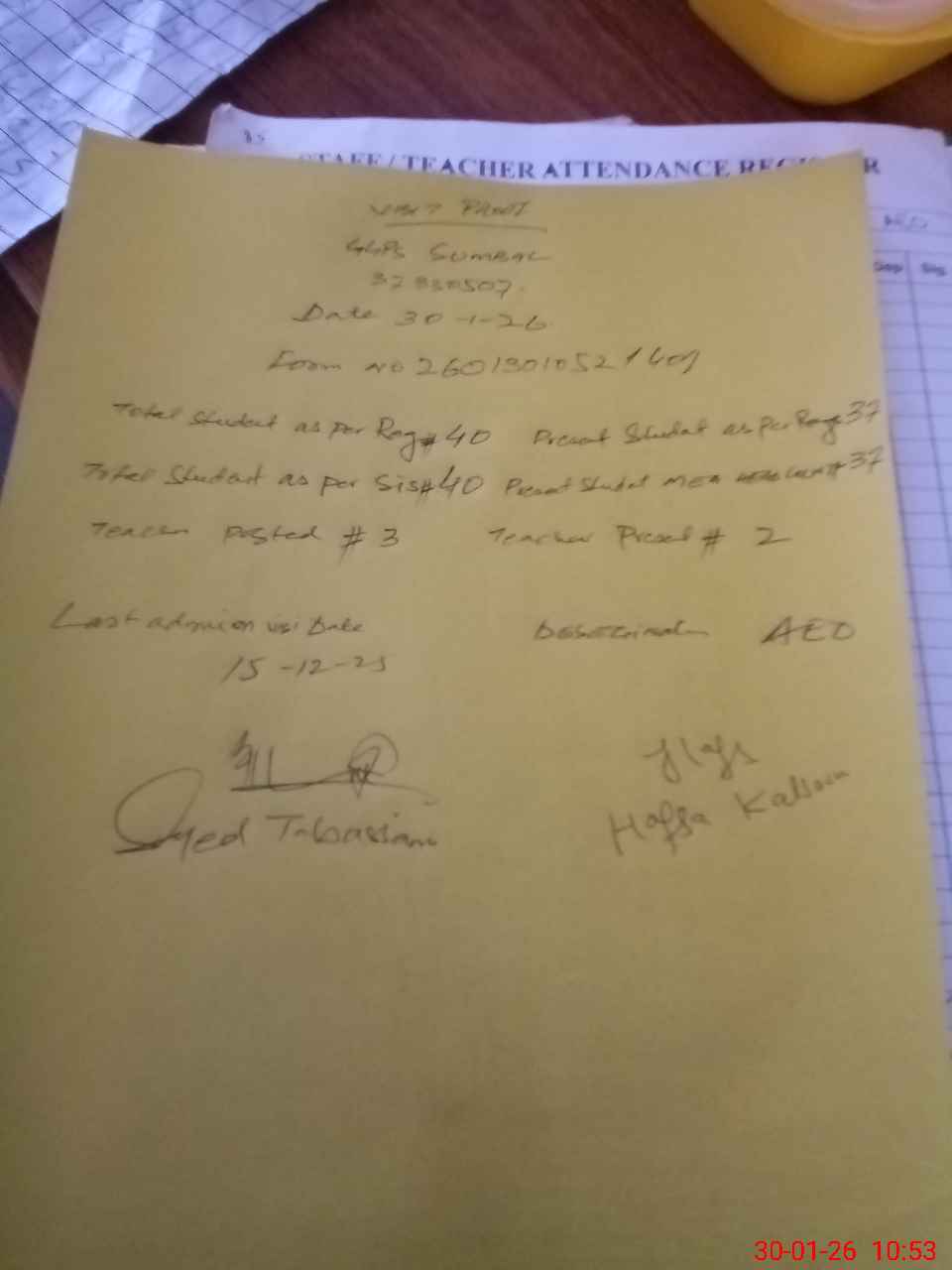 | EMIS Code: 37330507 | Name of School: GGPS SUMBAL | |||