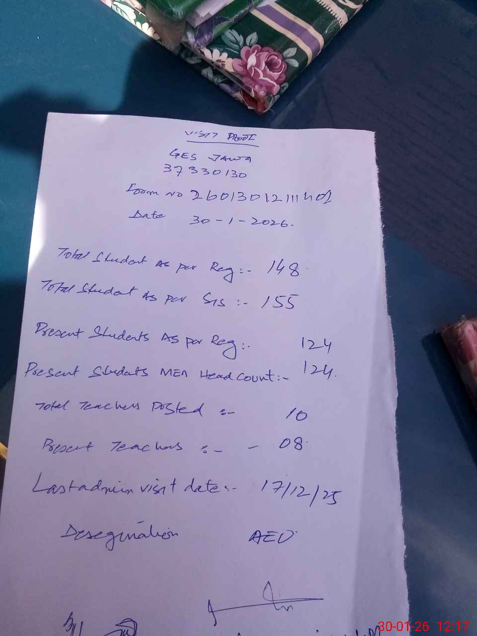 | Attendance Register | Head Teacher | MEA with School | Visit Proof |