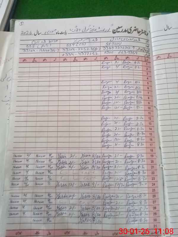 | CNIC | Full Name | Designation | R/C | Absence During Last Calender Month |