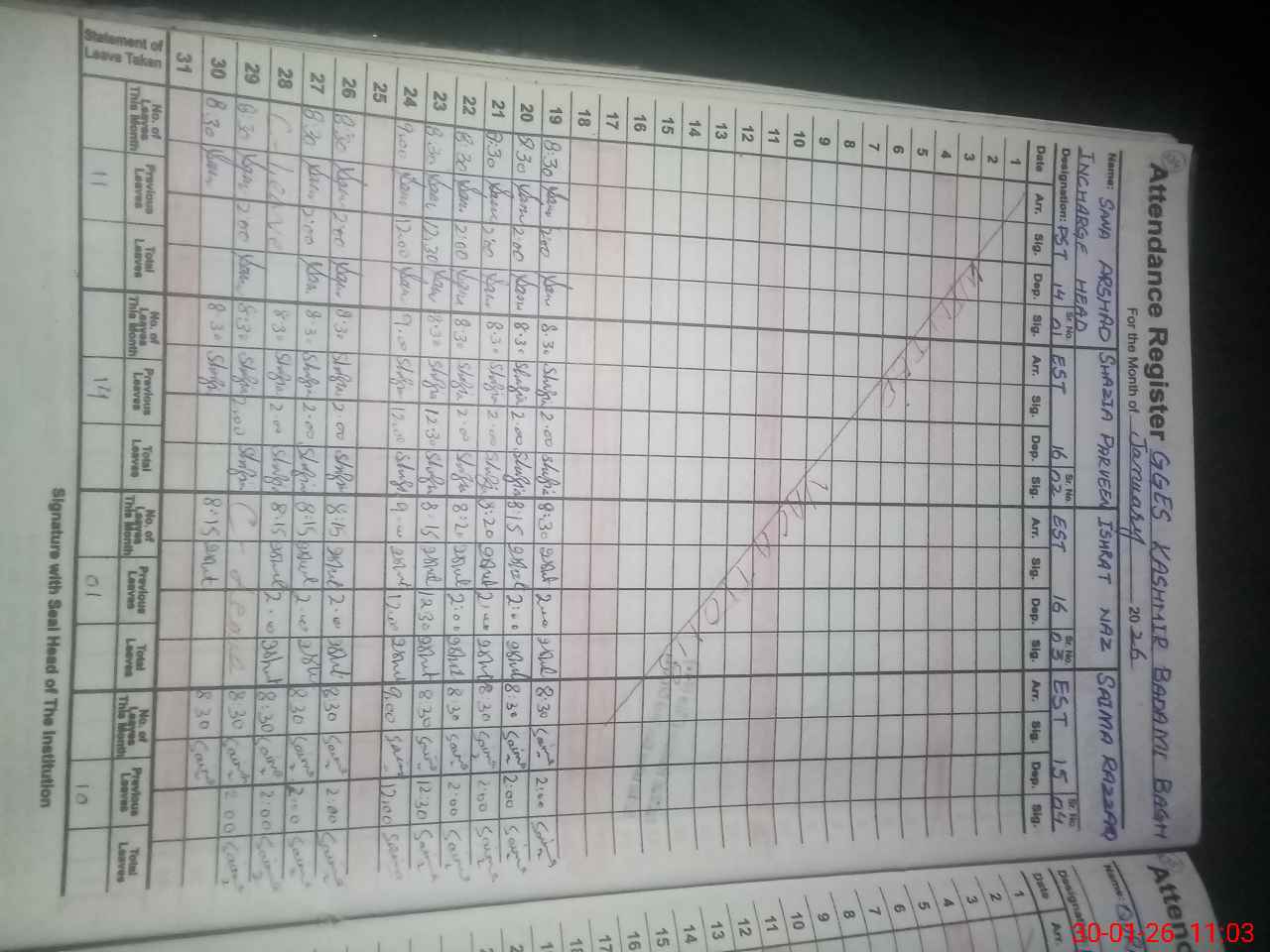 | No. of Students Present - Male | 0 | 20 | 29 | 32 | 24 | 29 | 21 | 0 | 0 | 0 | 219 | |||||