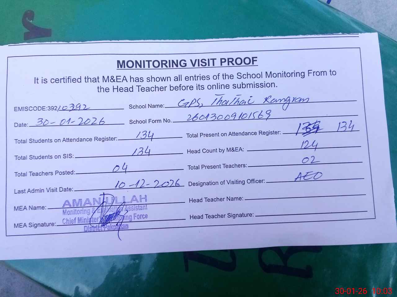 | EMIS Code: 39210292 | Name of School: GPS THATHAI RANGRAN P/O CHAK BEDI PAPATTAN | |||