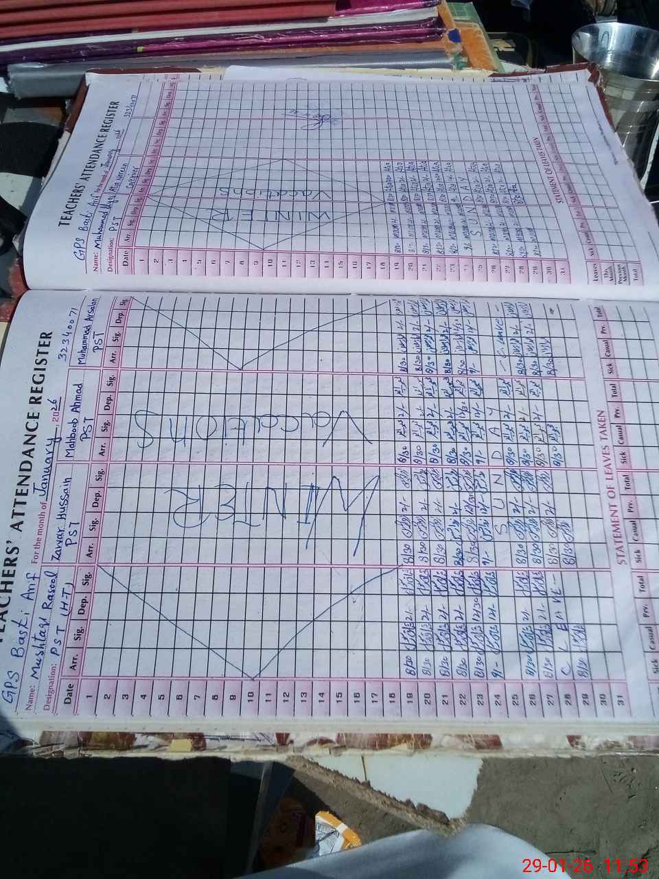 | CNIC | Full Name | Designation | R/C | Absence During Last Calender Month |